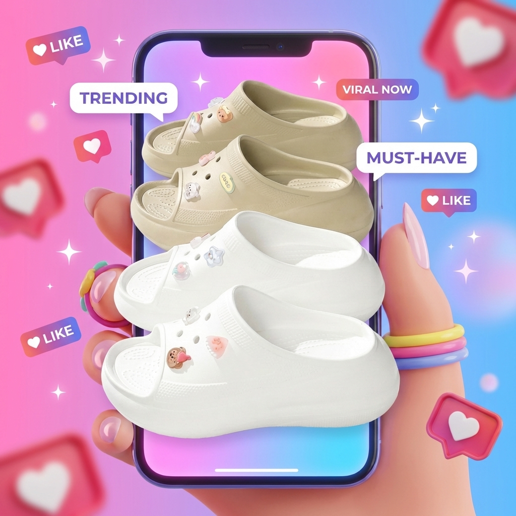 La ciabatta platform con rialzo segreto integrato. Comfort leggendario stile Crocs, design kawaii Labubu, e 6 centimetri in più che nessuno vedrà mai. Il tacco nascosto che sembra una ciabatta.